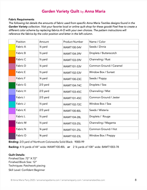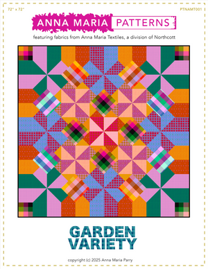 Diving into color and texture, this quilt is a very captivating story of "easier than it looks". At once modern and nostalgic, the combination of two different traditional blocks with a simple border of square patches delivers big on charm. The secret of this design is clever color placement and I have already figured that out for you! Whether you are using yarn dyed wovens or your favorite prints, this kaleidoscope is an opportunity to spin some magic.