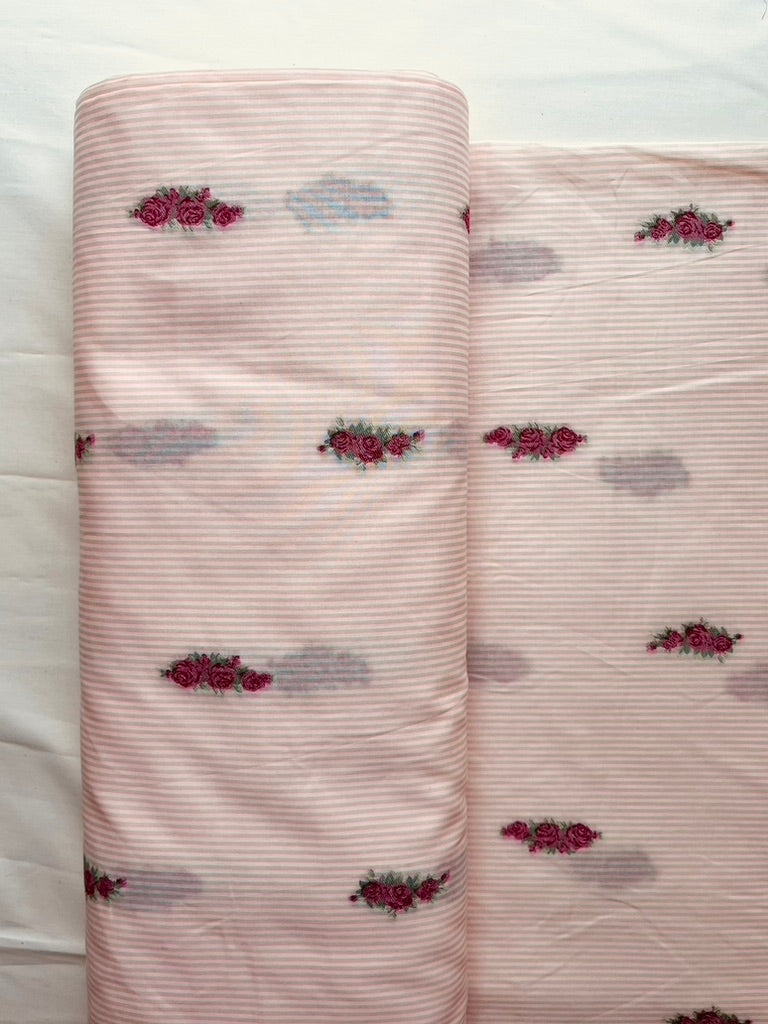 Embroidered Rose Pinstripe / Pink