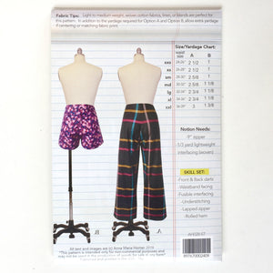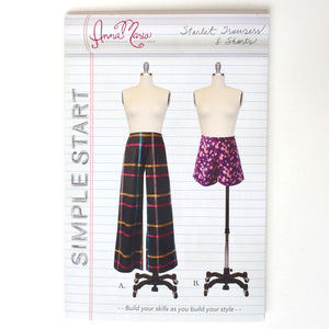 NEW! The Starlet Trousers & Shorts is one of the three new patterns in Anna Maria's SIMPLE START skill building collection of patterns! Skills learned in this pattern are front & back darts, waistband facing, fusible interfacing, lapped zipper and rolled hem. This is also a great project to get your plaid matching on point. These patterns are perfect for a classroom setting.