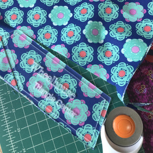 This custom Acrylic and Mylar template set for the Wheelhouse Quilt will simplify your cutting! Including 6 Acrylic and 1 Mylar shapes, it’s the perfect compliment for the Wheelhouse Quilt Kit.