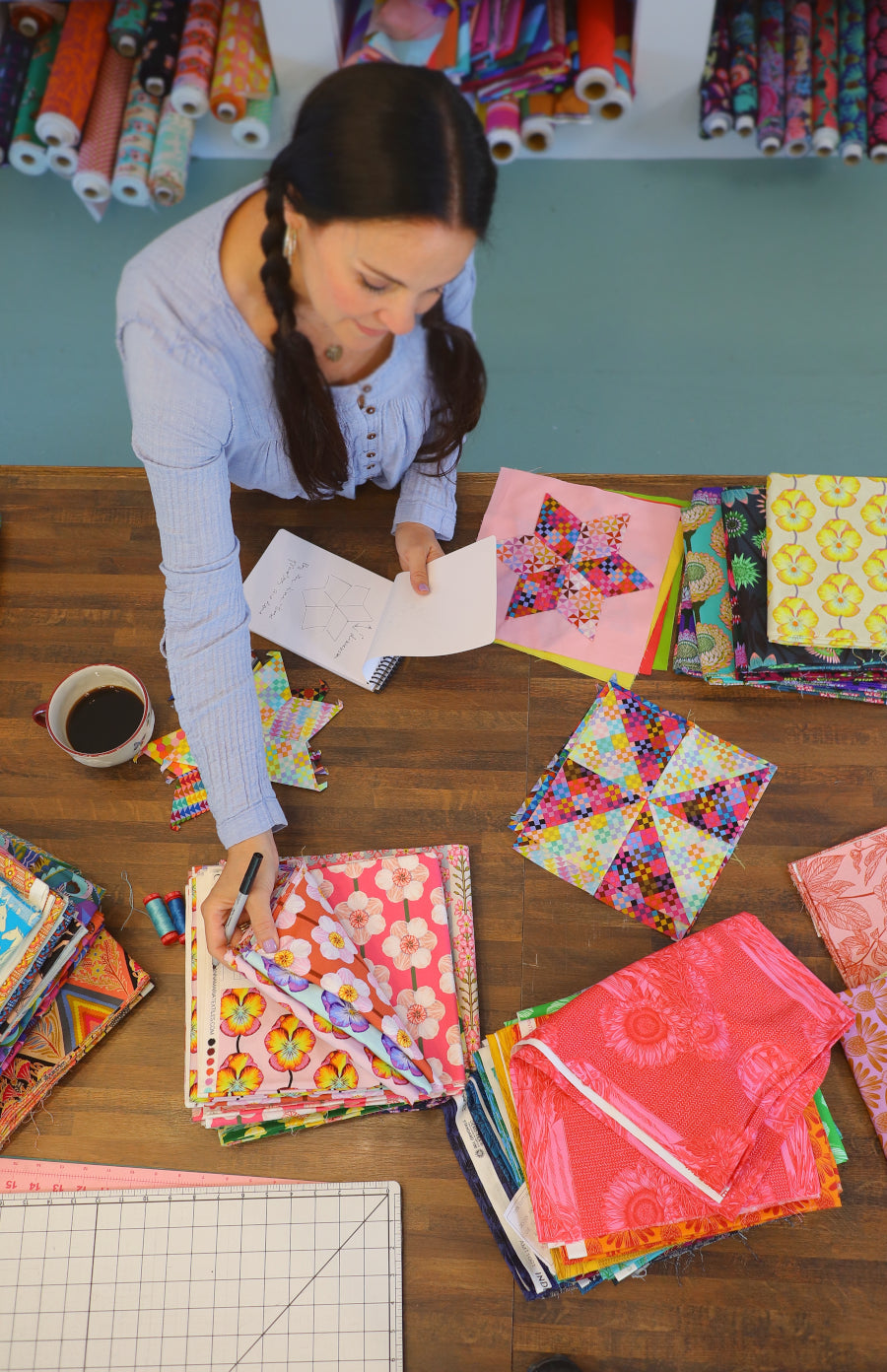 In 2001, Anna Maria began freelance partnerships with gift and homewares companies and her art was eventually discovered by Donna Wilder, the founder of FreeSpirit fabrics. Her first fabric collection debuted to the quilt industry in 2005 and ever since her fabrics have delighted makers around the world with her energetic color and nostalgic yet fresh style. Presenting her exuberant quilts and sharing her self-taught process has taken her all over the world and kept her passion and growth as an artist moving forward.